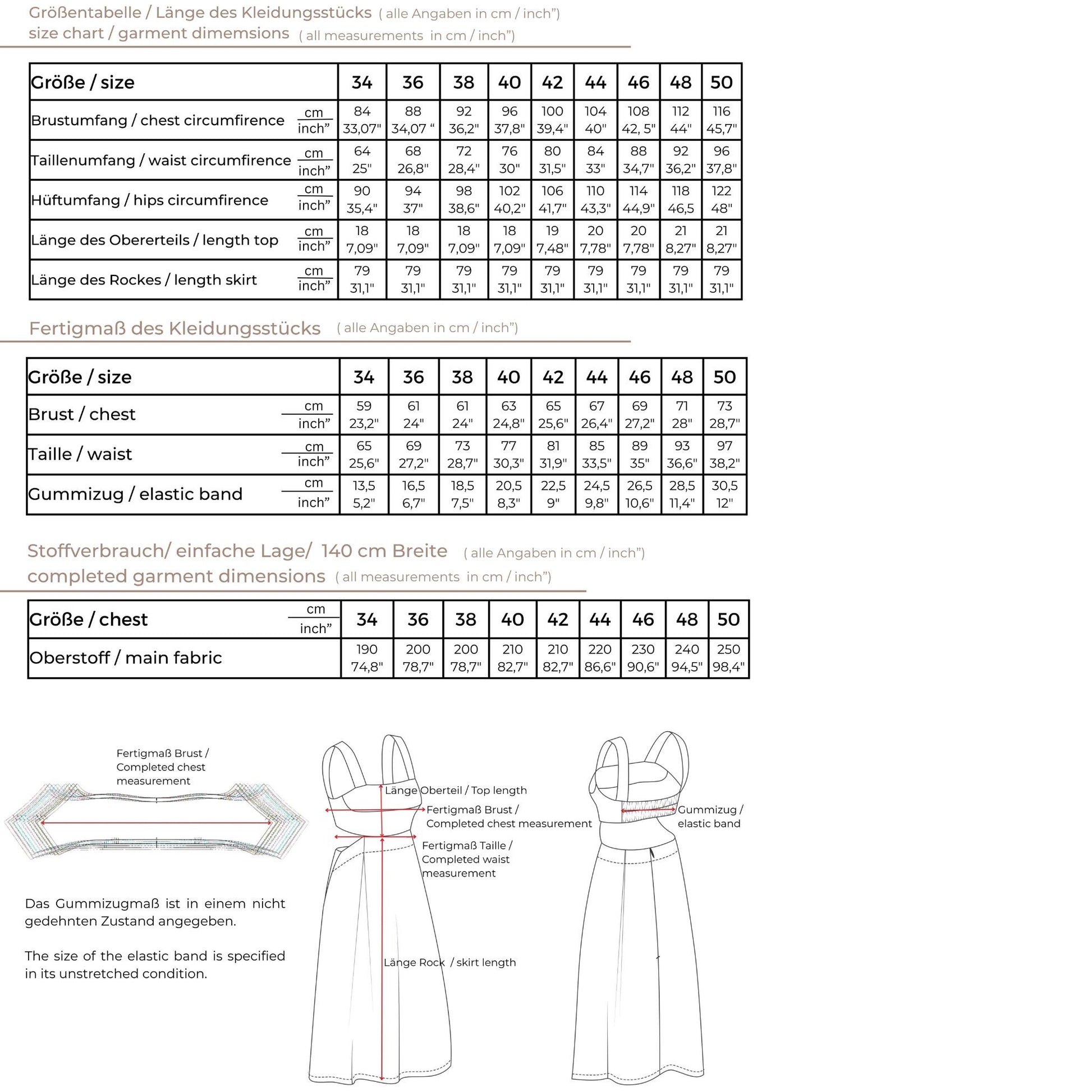 – Oberteile (Blusen, Kleider, Mäntel, Pullover) orientieren sich am Brustumfang.